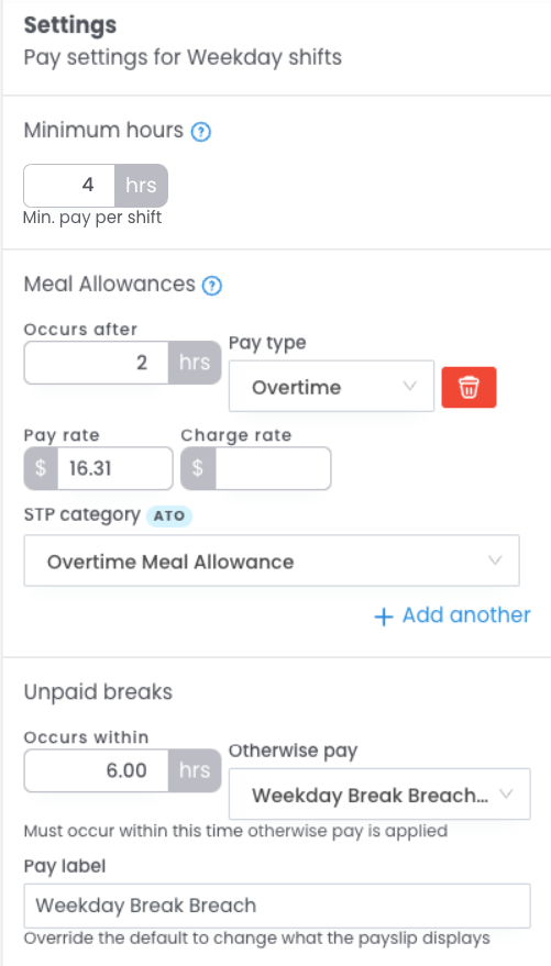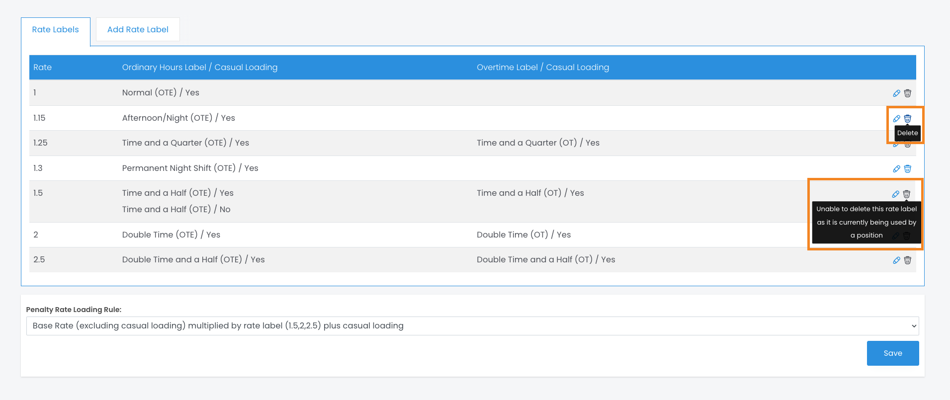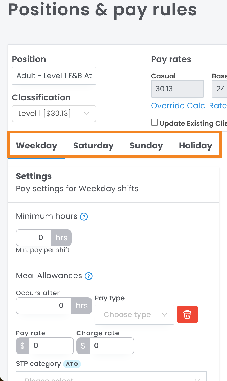 Hot tip: Our system automatically calculates your casual rates for you by multiplying your Classification base rate by the loading you have set here. Meaning, you don't need to worry about adding these in, we do the hard work (maths) for you!
