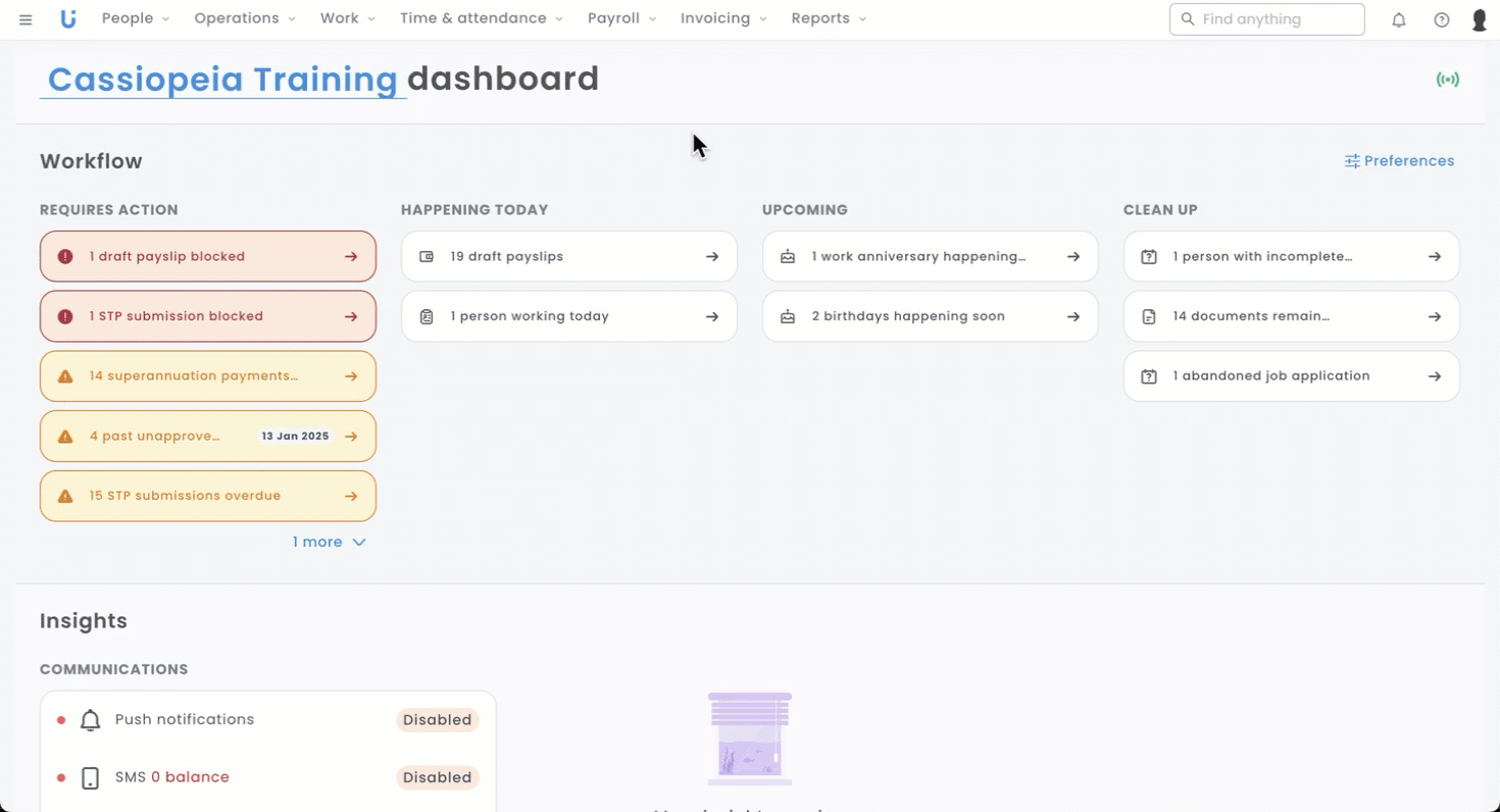 In Fair Work, a Classification is usually the description of a role and the requirements an employee needs to meet to work under that award. The Classification also sets the employee's minimum pay rate.