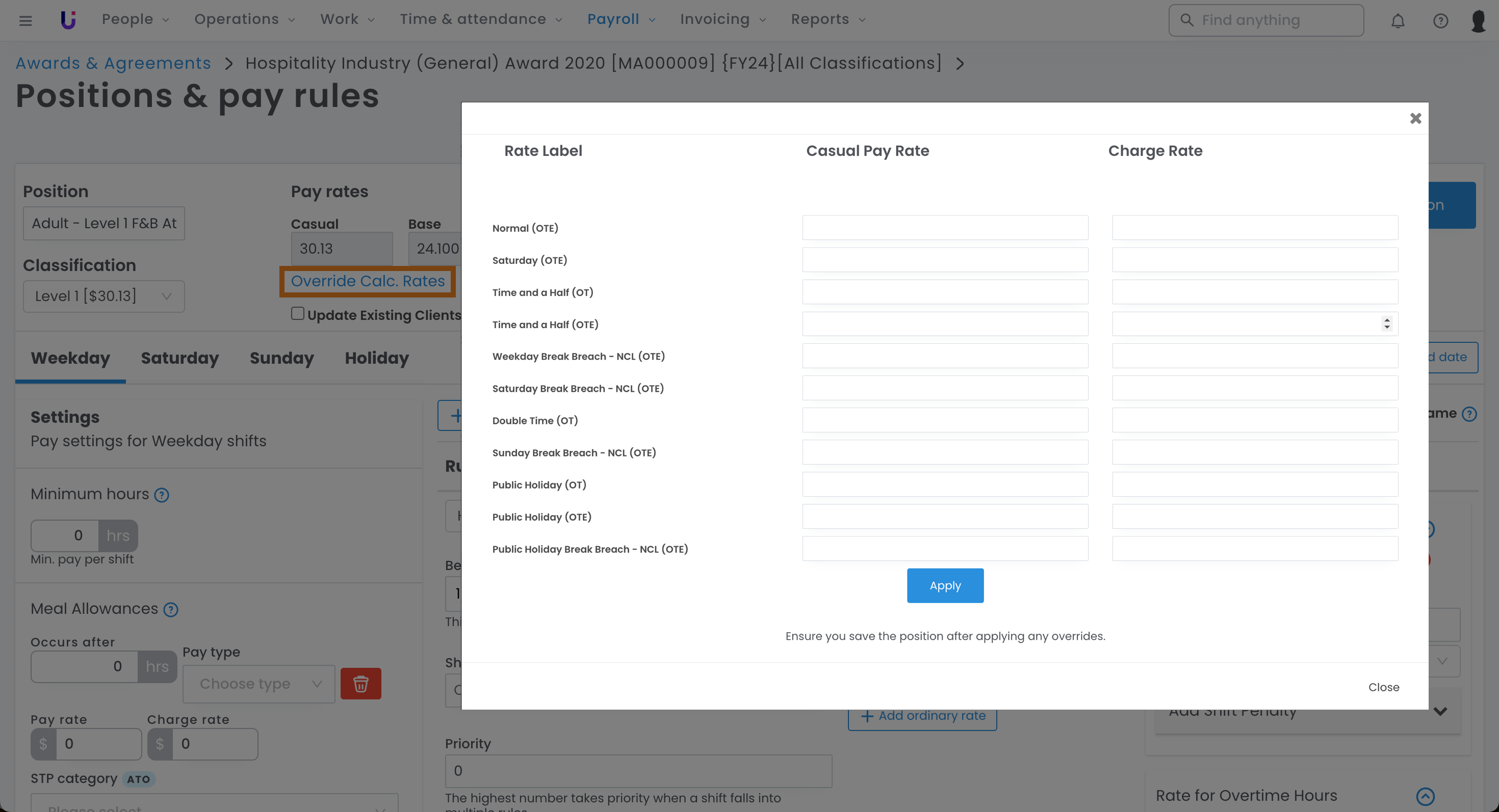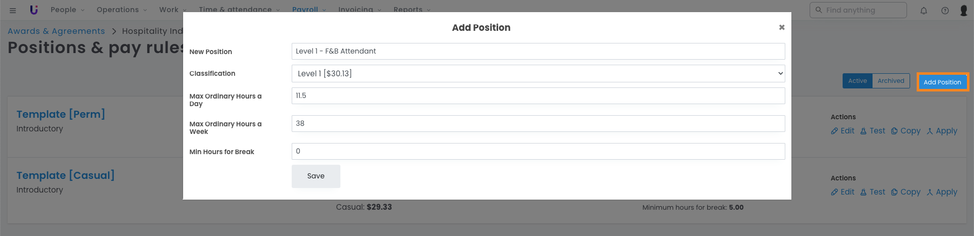 These steps are detailed further in our guide on adding new positions to an Award or Rates Book.