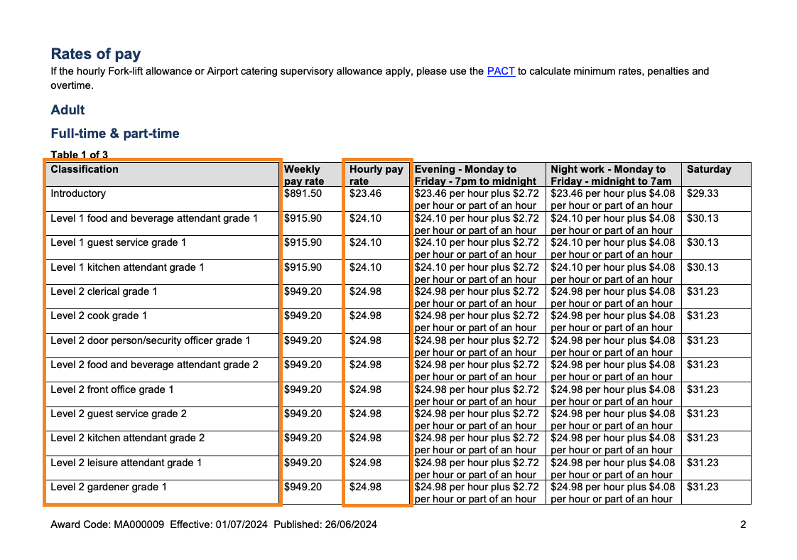 Hot tip: Download your awards current pay guide from Fair Work and have it either printed out in front of you or on your second screen to refer to!