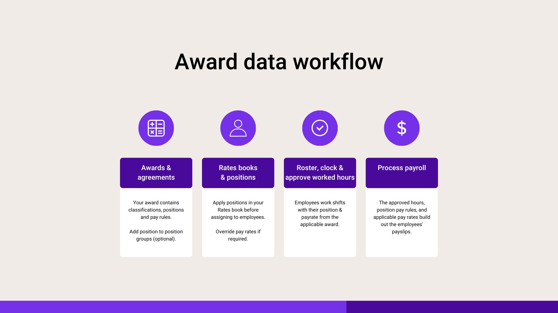 For the purpose of this guide and to keep things simple, we will be using the term award throughout. However, all processes outlined can also be used to build out your Collective Agreements, EBAs, IFAs and any other agreed pay conditions.