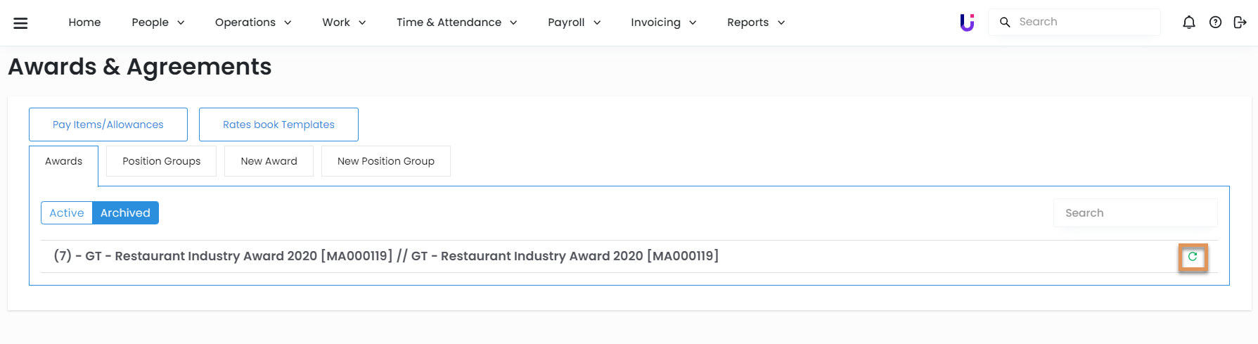 Please note: When restoring an archived award, always ensure you check that your pay rates are up to date with the current financial year.