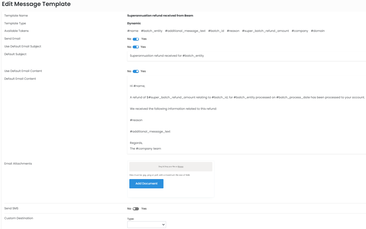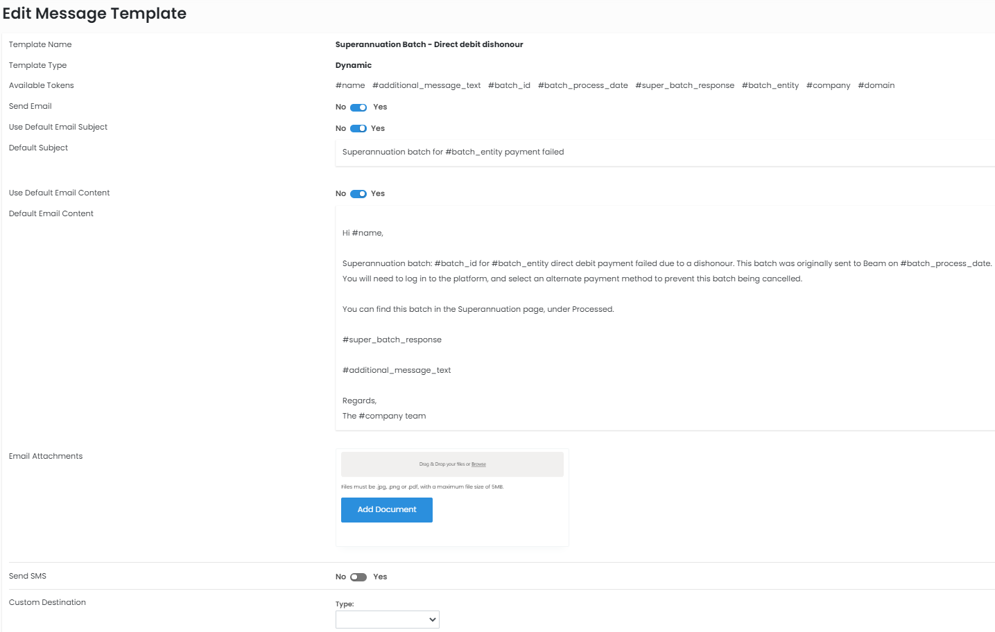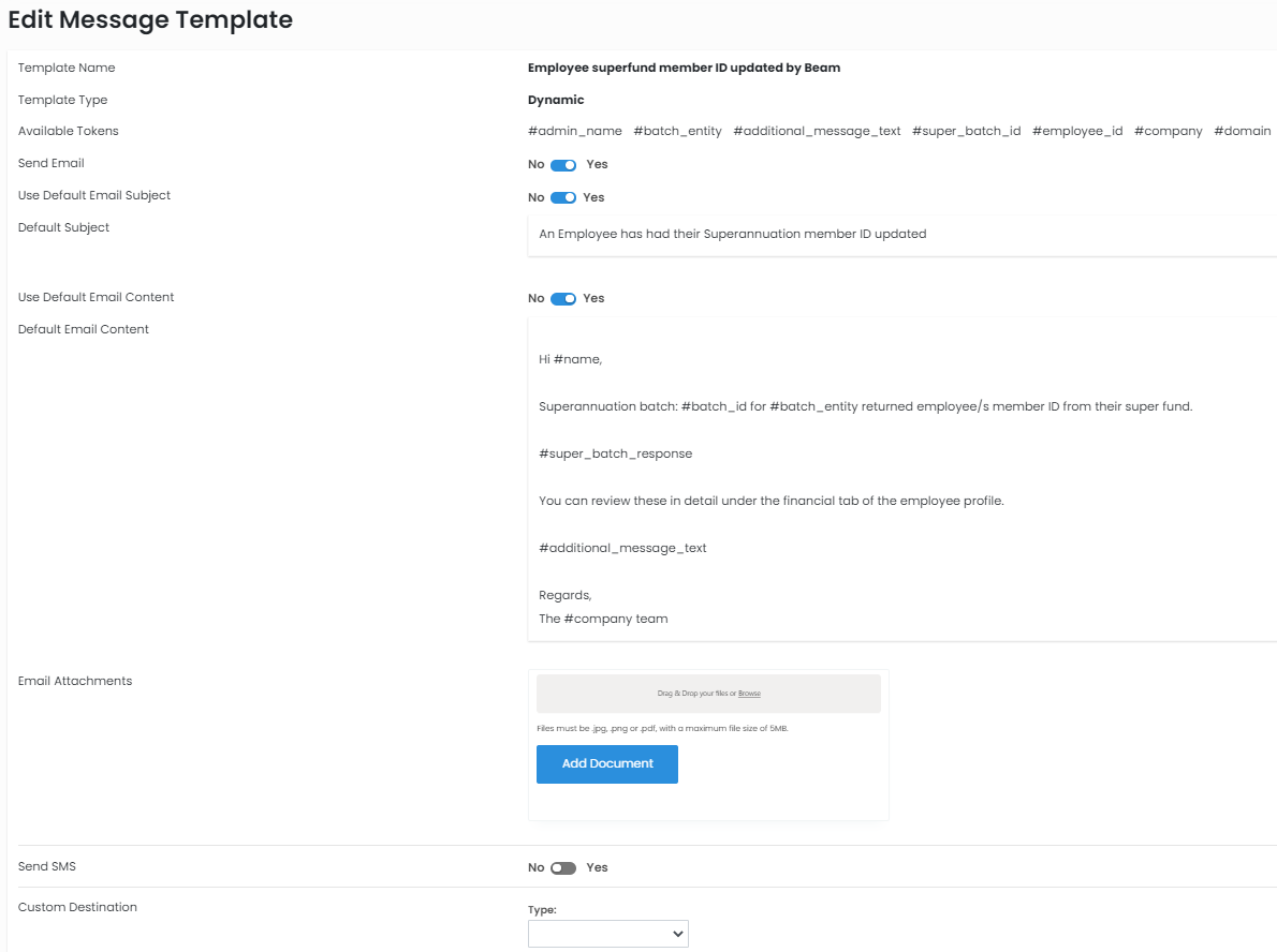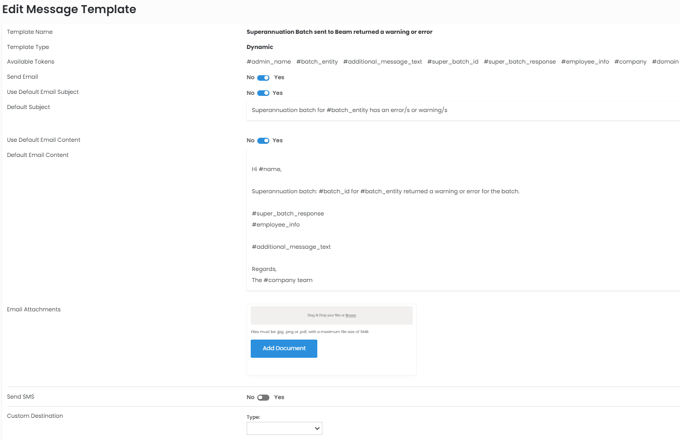 - The Beam payment reminder notification is sent 5 days after sending a Superannuation batch to Beam without payment indicating that the payment is still required.