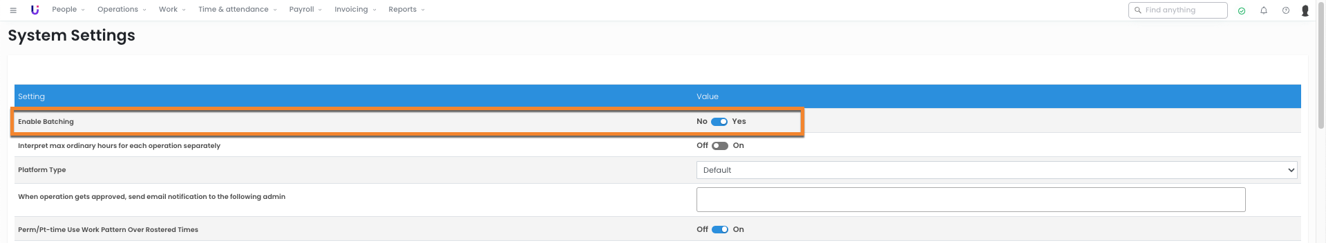 The setting to enable this feature is applied on the platform level, as such it is highly recommended that you check whether this setting is enabled before starting to process payroll, as batches are applied when generating pay.