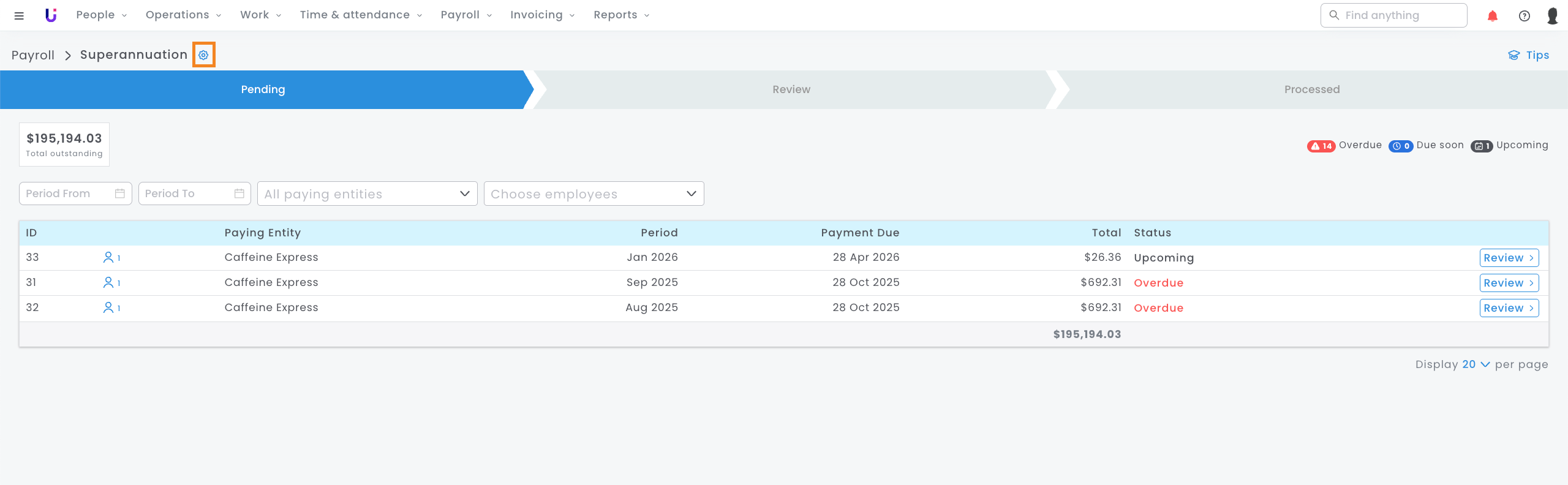 As superannuation will be paid per entity on your foundU platform, ensure to check your platform's General Superannuation settings.