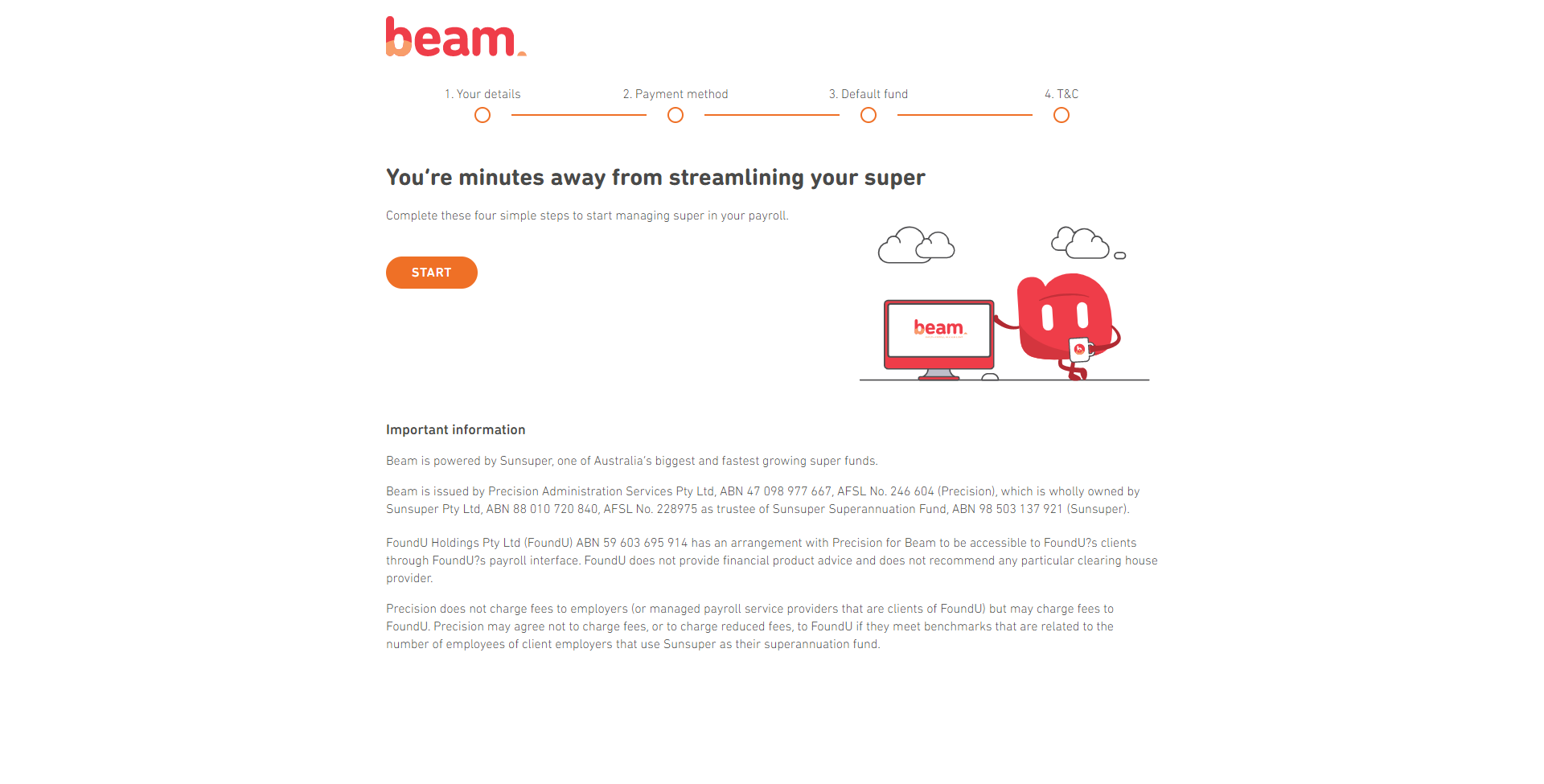 Beam is a free clearinghouse integrated with foundU for fast, easy superannuation payment processing.