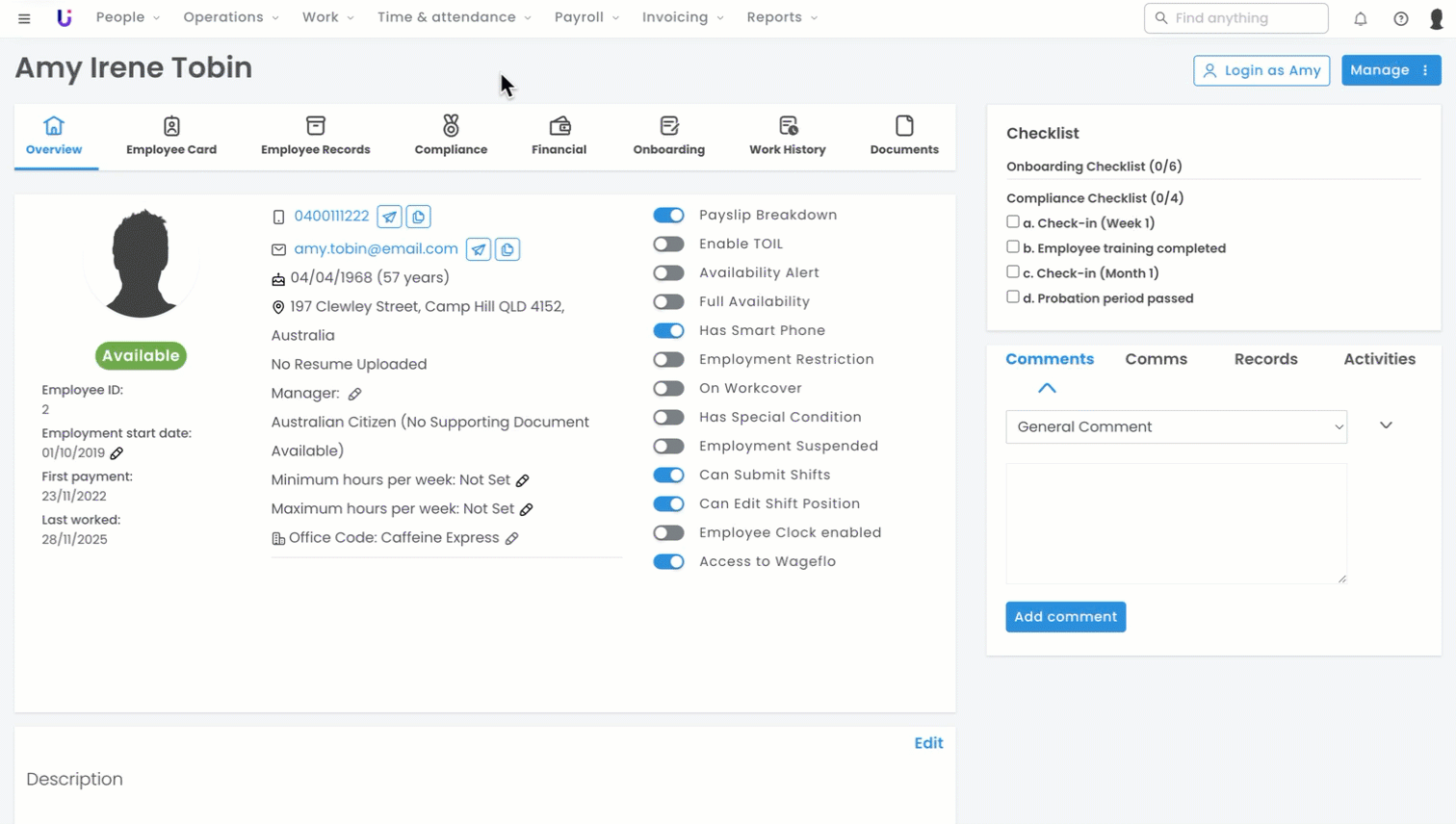 - Navigate to People > Approved People and select the relevant employee to go to their profile.