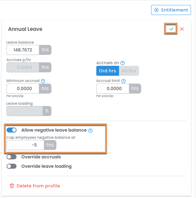 - Optionally, you can cap the amount that the employee can go into negative leave.