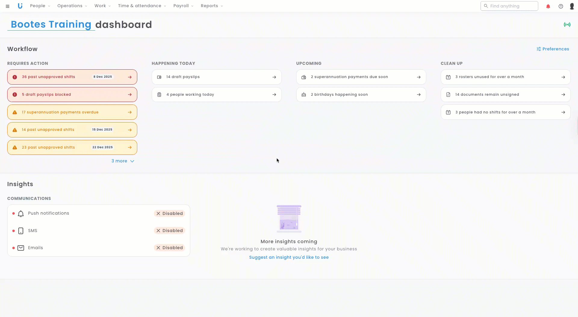 - Synchronising data around rosters and clocking in/out with another system.