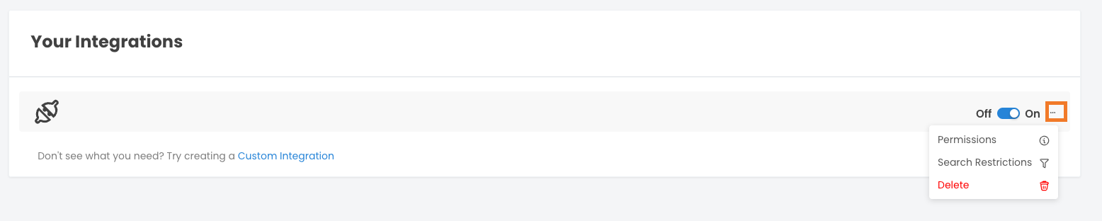 - In the Your Integrations section, locate the required Custom Integration.