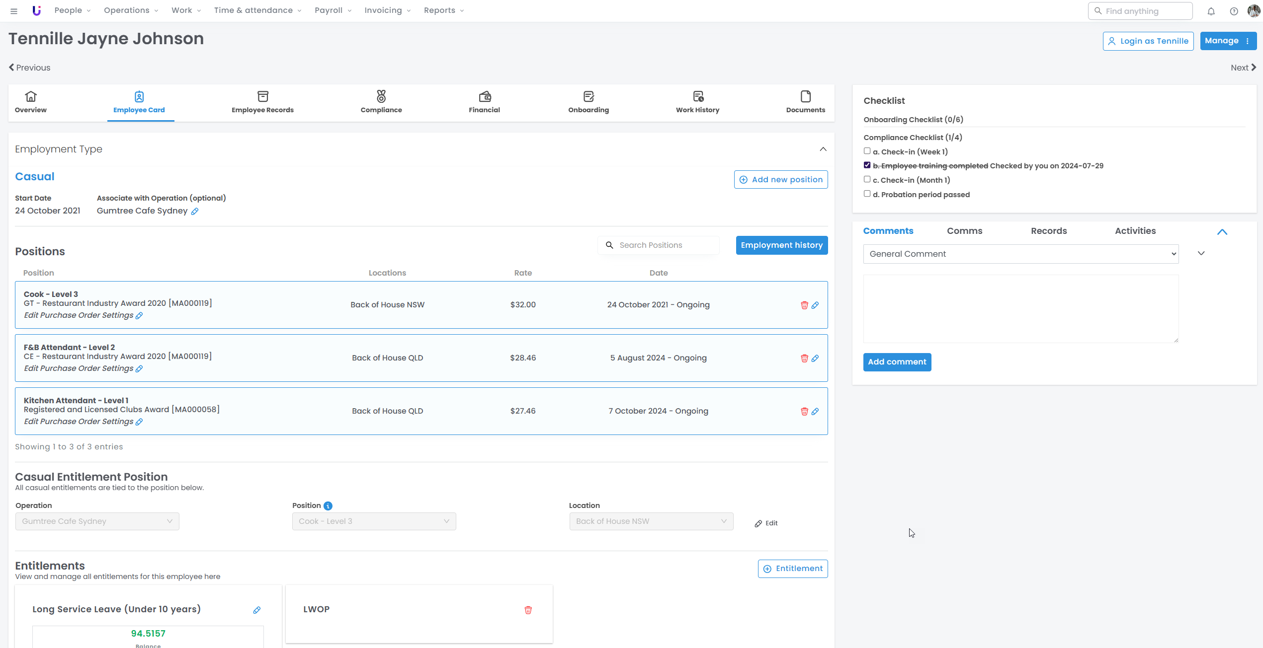 As mentioned above, employees can have multiple casual positions linked to their profile and work at different locations or on various rosters. There is no limit on the number of positions a casual employee can be assigned to.