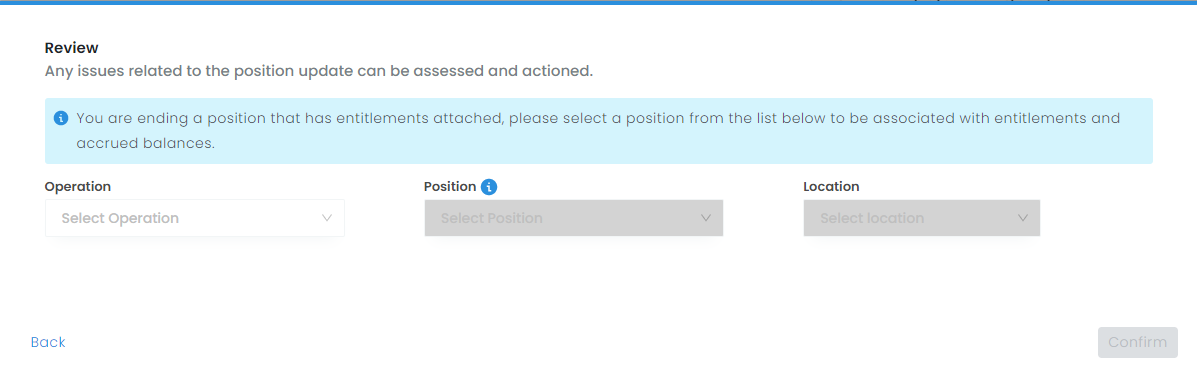 When ending or deleting a position that is selected as the casual entitlement position, you will need to select an operation and a new position for this.