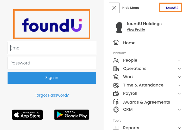 Customise your foundU platform with your company logo and add a custom background for your login pages