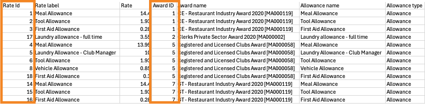 From the drop down select Shifts, then select Export Allowance Rates. This will export a CSV file with the details of all allowances currently set up in your platform.