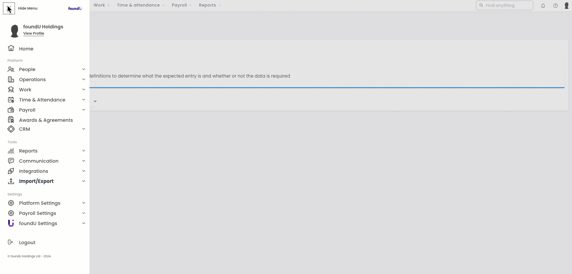 Before starting, if you do not already have the details of the Award Id and Allowance Id, you will need to pull an export to collect these. To do this navigate to the sidebar to open the main menu > Import/ Export > CSV Import.