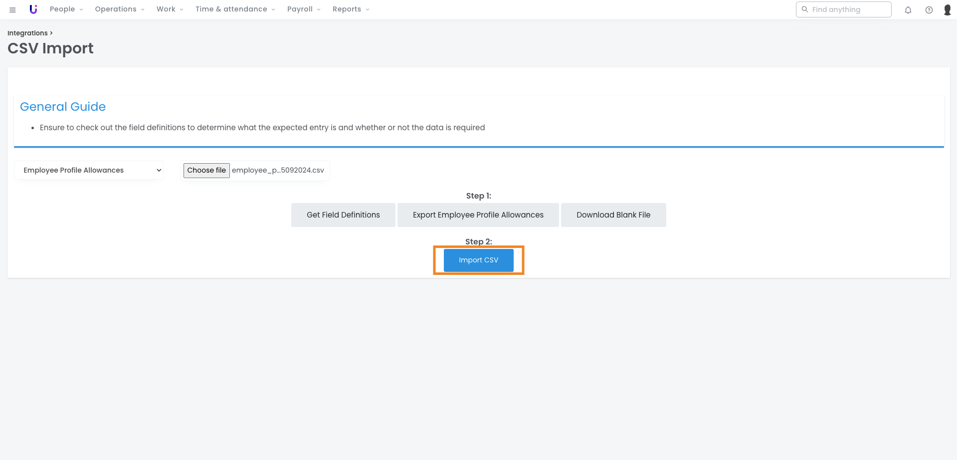 The Employee Profile Allowances CSV import allows you to manage the Allowances located in your employee profiles easily. With this tool, you can add, remove and update your employees' profile allowances in bulk.