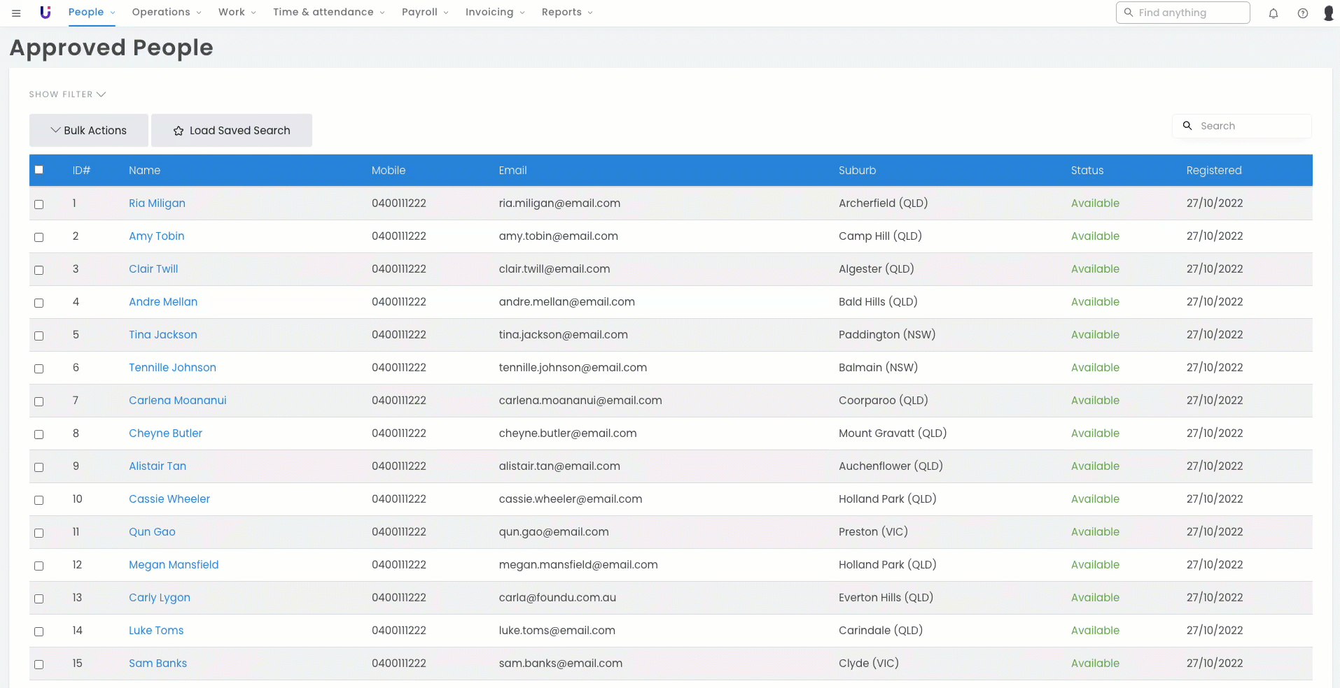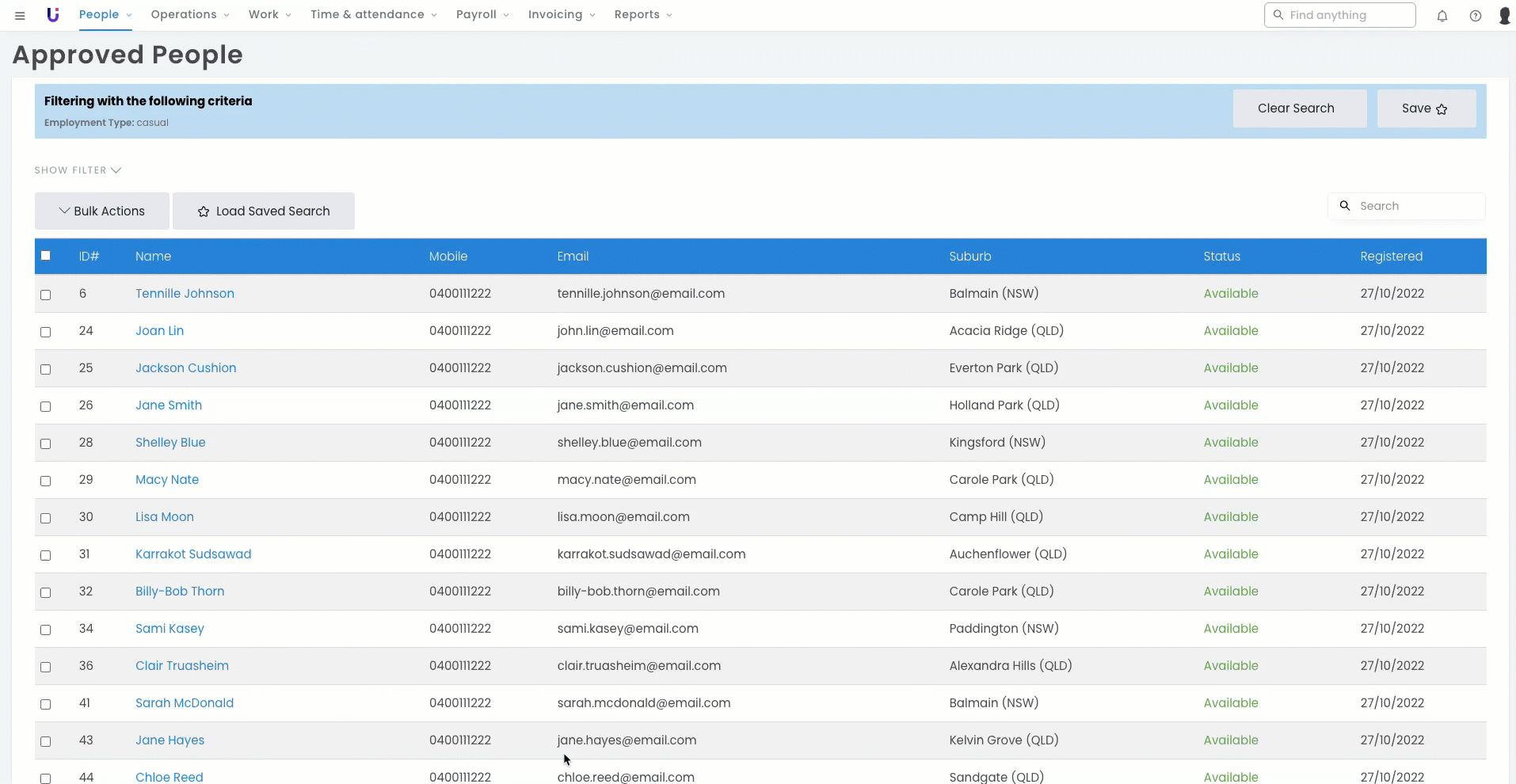 - Navigate to People > Approved people > expand your page size to encompass all of your casuals.