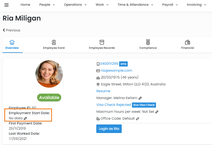 Hot tip: If you would like to align the employee's CEIS automated comms with the 6, 12, and 12+ intervals, you can optionally edit the Employment start date (pictured above) on the Employee Profile to match the casual position's start date.