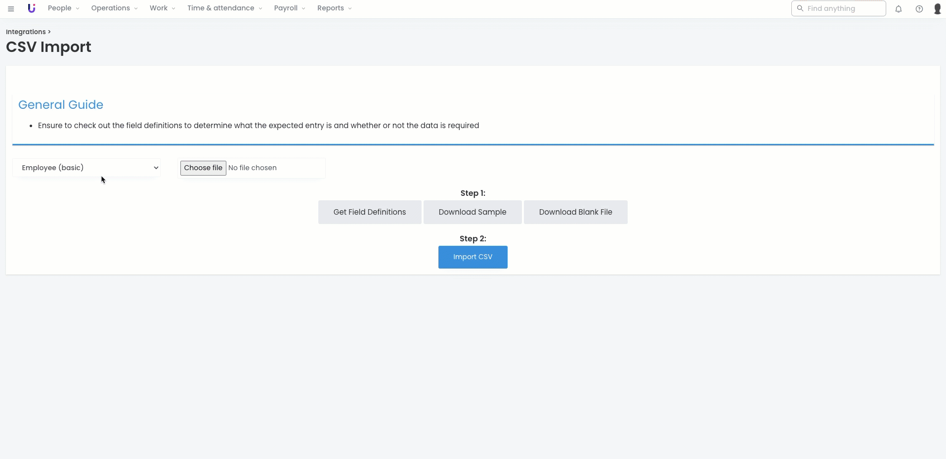 When performing the advanced employee import, it's important to understand that this import offers greater flexibility with its mandatory fields. This simplifies the task of managing and entering your data.