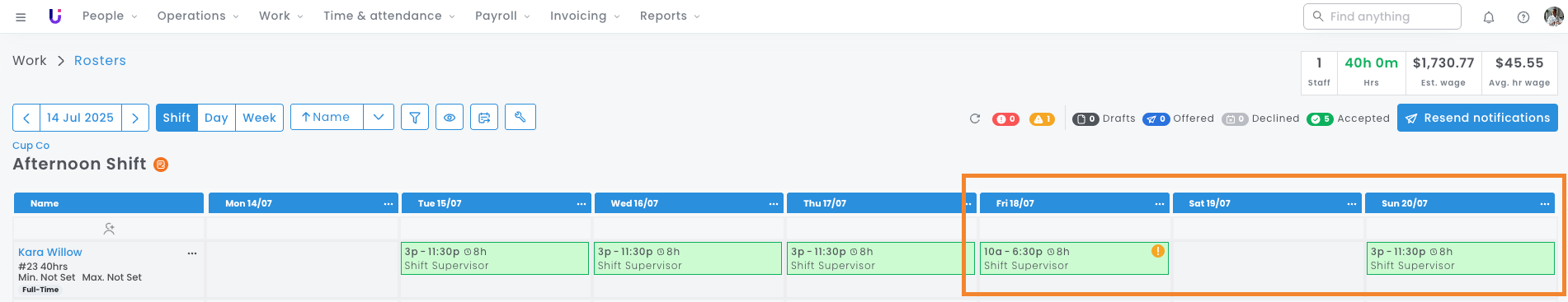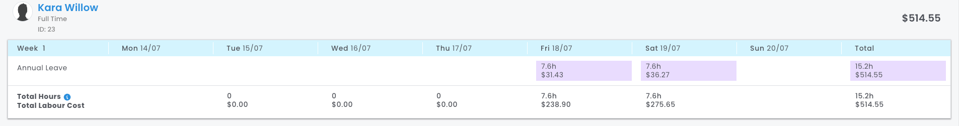 - With shift times entered, penalty rate loading calculations are performed