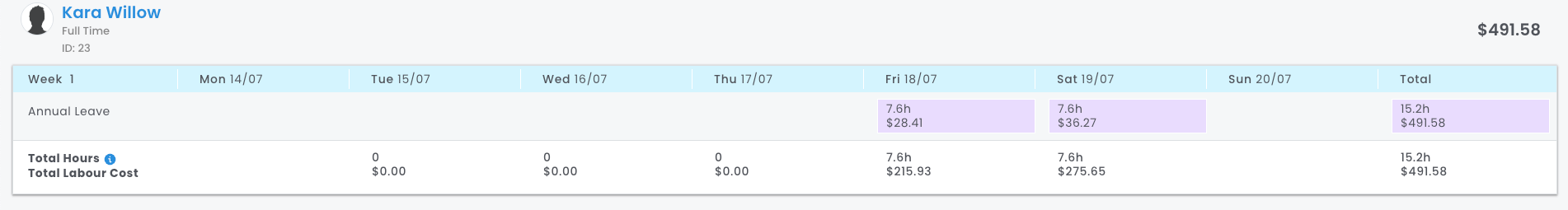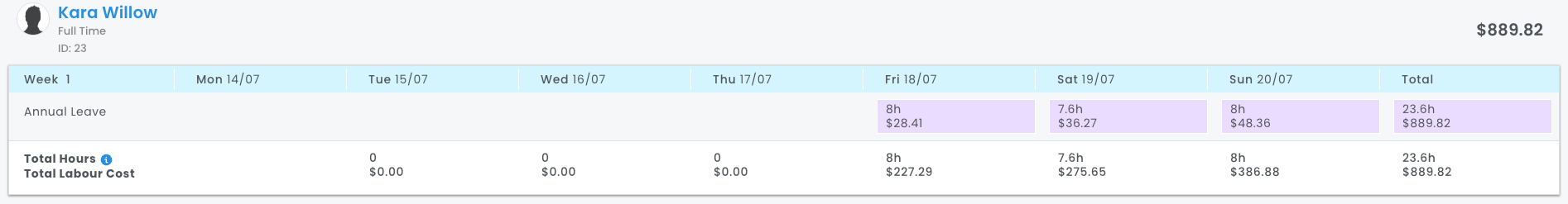 - Friday - Leave loading. Based on the rostered shift & its time. The difference in time from the previous example means that the shift is an afternoon shift, which has a penalty rate lower than the leave loading.