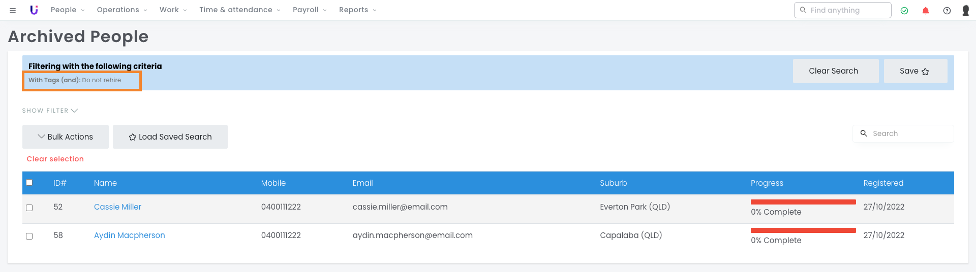 - Once applied, these tags can be used to filter employees in the Archived People menu, making it easy to perform bulk actions such as sending rehire emails or reactivating profiles.