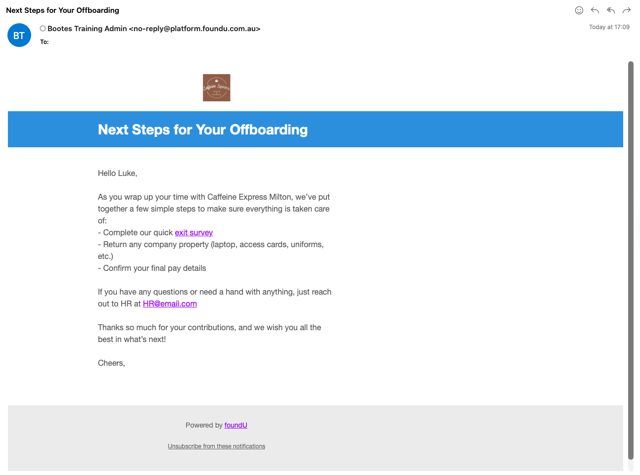 foundU comes with a range of powerful features that can make offboarding an employee much smoother and more organised. While they do require a bit of setup on your end, these tools can help you keep track of everything, stay on top of tasks, and make the offboarding process feel effortless.