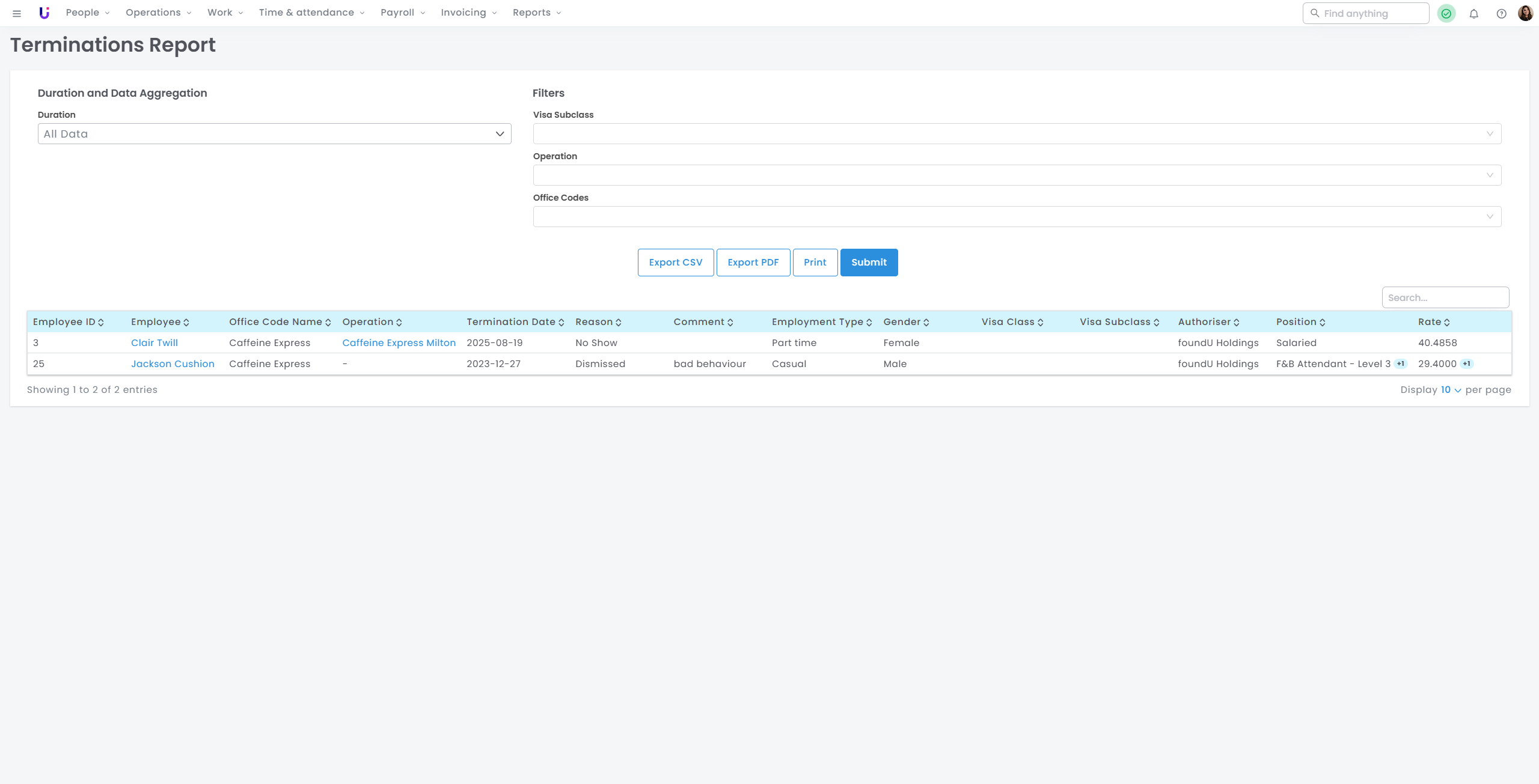 The Terminations Report is an invaluable tool for human resources personnel and management to gain insights into employees' termination dates and reasons, which can be customised for your platform at the end of their employment.