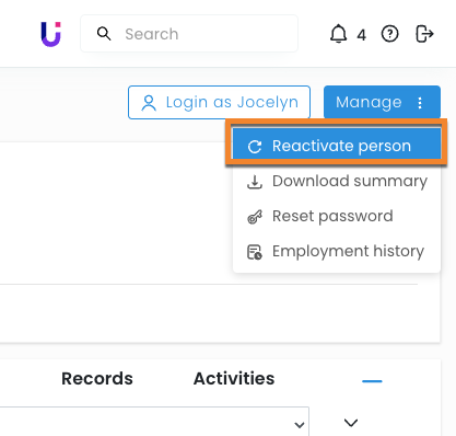 If you would prefer to have complete control over which employee profiles get reactivated, you can instead manage this by individually reactivating select employees from the Manage button on the Employee's Profile.
