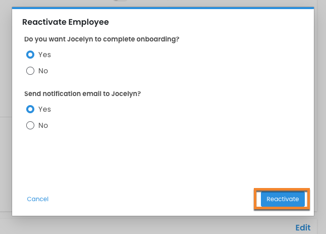 - If you select Yes, this will then send an email to the employee to notify them that their Employee Profile has been reactivated.