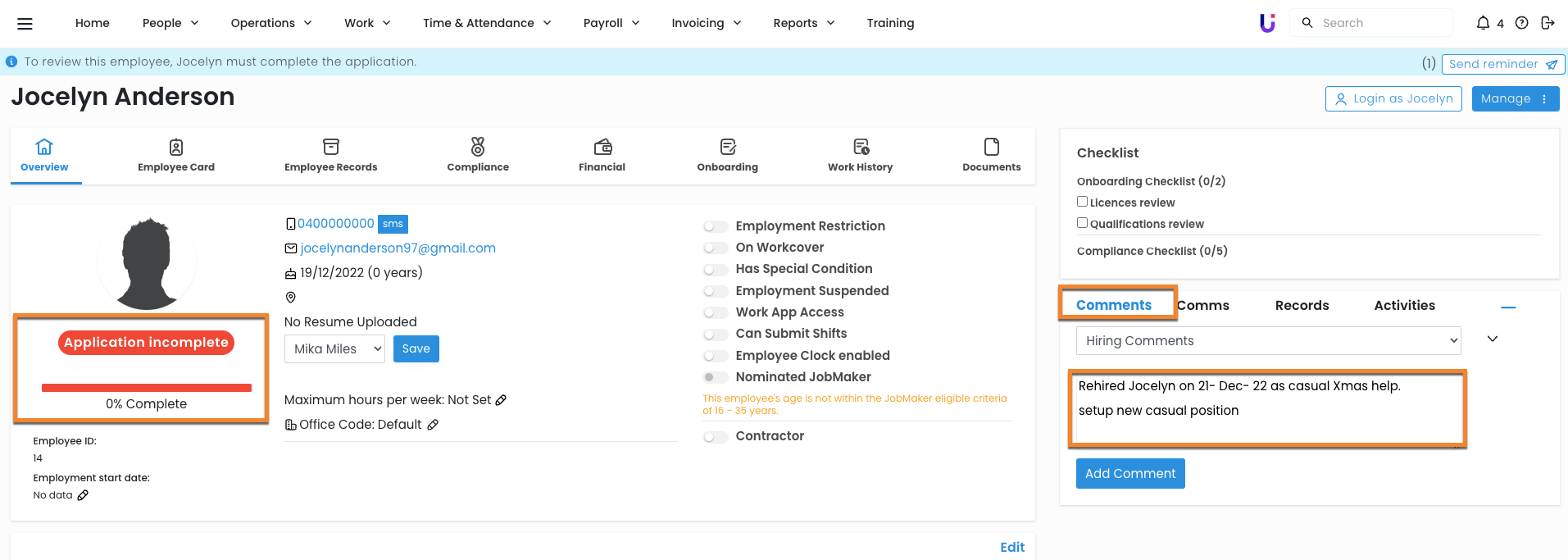 Once the relevant details have been updated, the employee will be available to commence work.