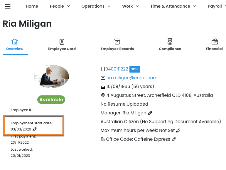 To manage when an employee can access this renewed amount, keep an eye on the employee's start date on the card in their profile.