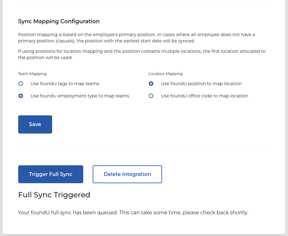 - Trigger Full Sync - hourly sync automatically, plus the ability to manually trigger a full sync.