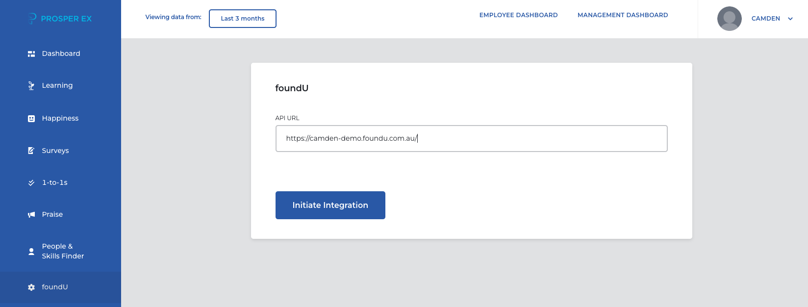 Enter the foundU platform URL > Initiate Integration.
