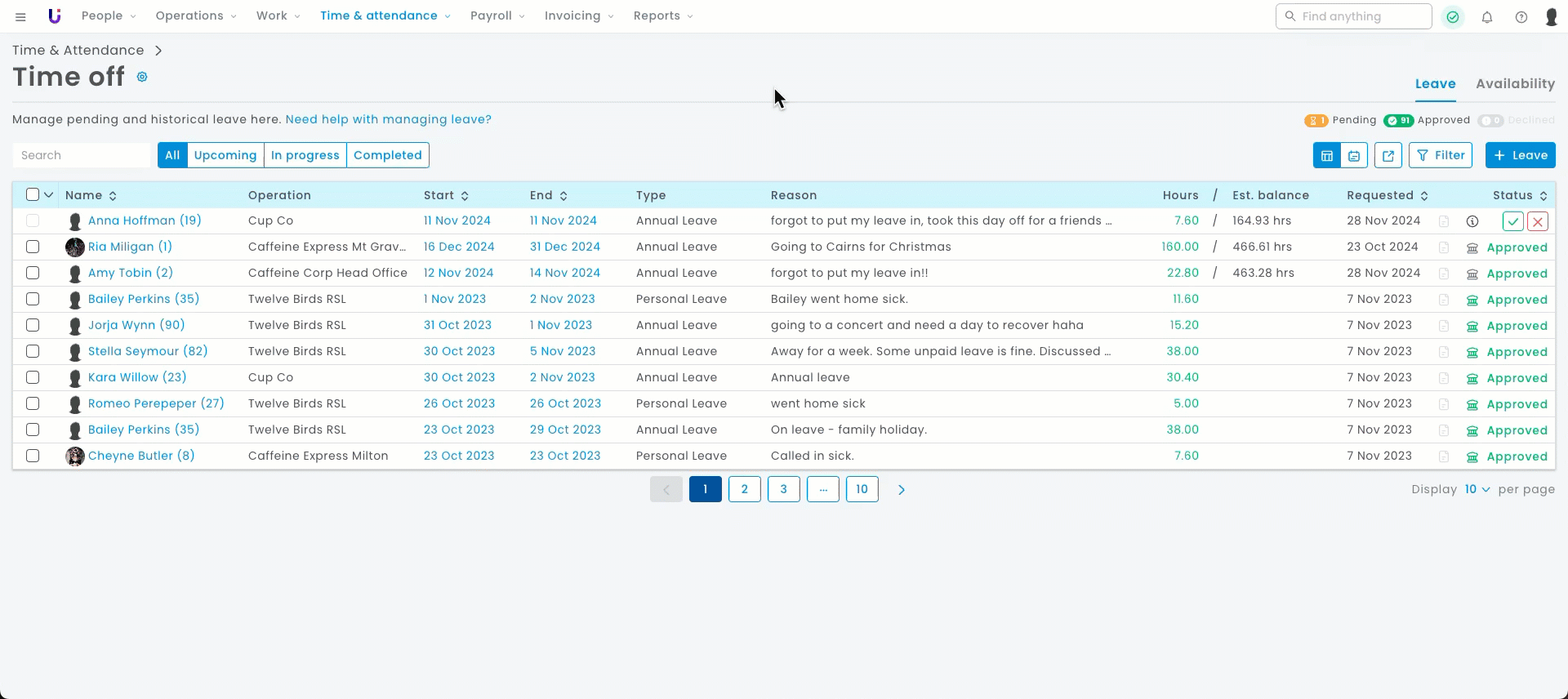 Leave hours can be added directly to a payslip instead of being actioned through the Time Off menu.