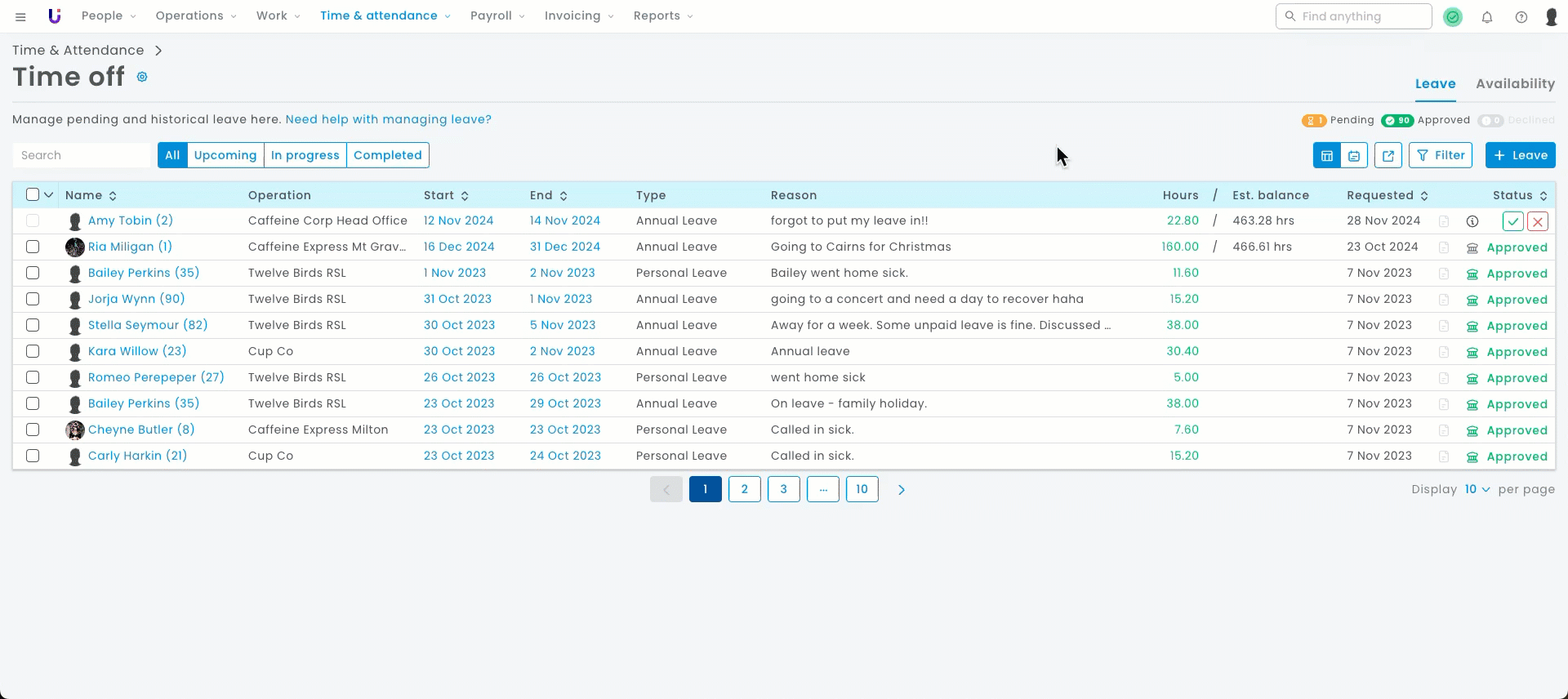 - If the payslip has been processed, approving a leave application will create a new draft payslip for the period end the leave falls in.