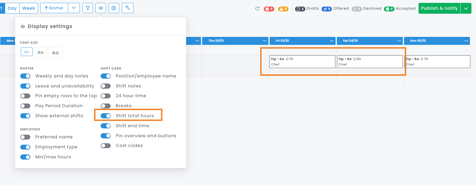 - Ignore the shift durations (grey badge under shift times) for these shifts.