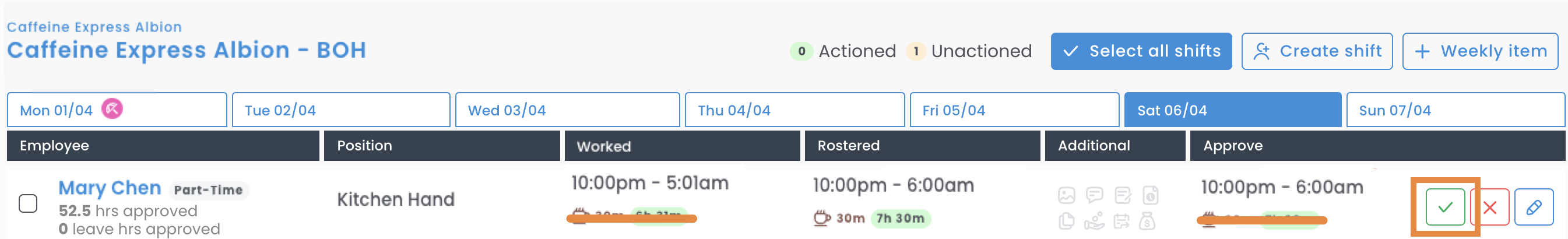 - Approve the edited shift.