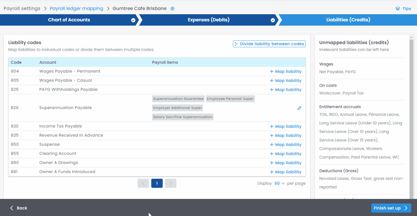 In this example, we allocate all Superannuation payroll liabilities to the Superannuation account.