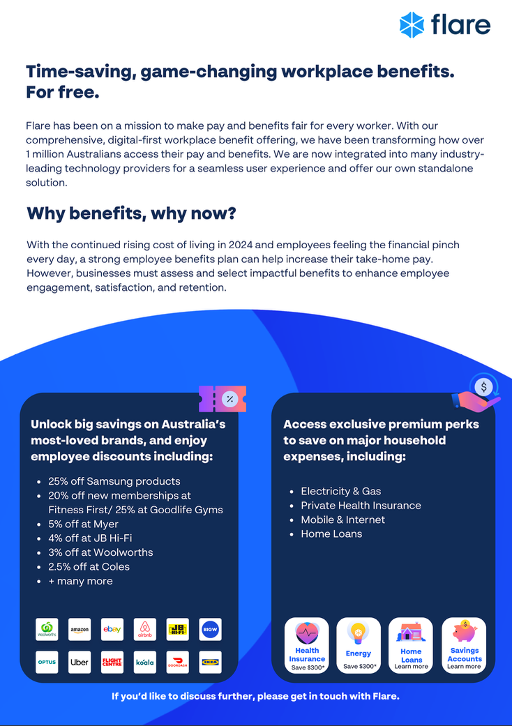 - Flare benefits will allow you to attract, engage and retain your staff.