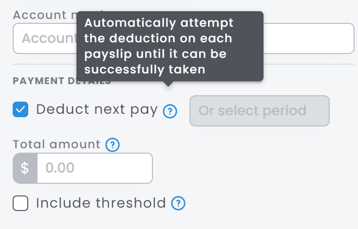 When applying new deductions for employees, you now have an option for the deduction to begin upon next pay.