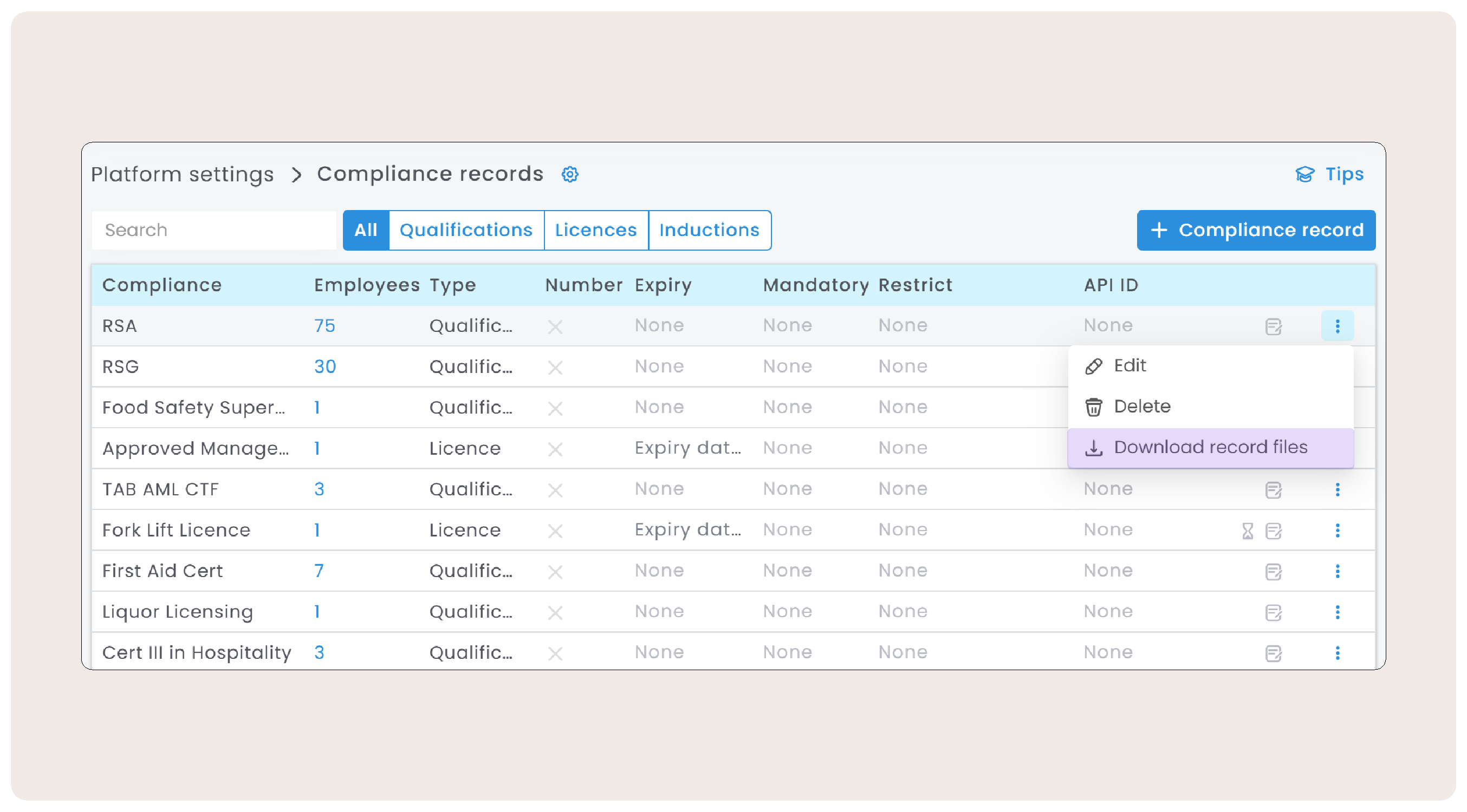 You can now bulk export all of your employee compliance records into a zip file, a feature particularly useful during audits. For instance, when preparing for an audit, you can easily export all relevant documentation, such as RSA documents, into a single zip file. This allows you to quickly access and display the required files on the spot.