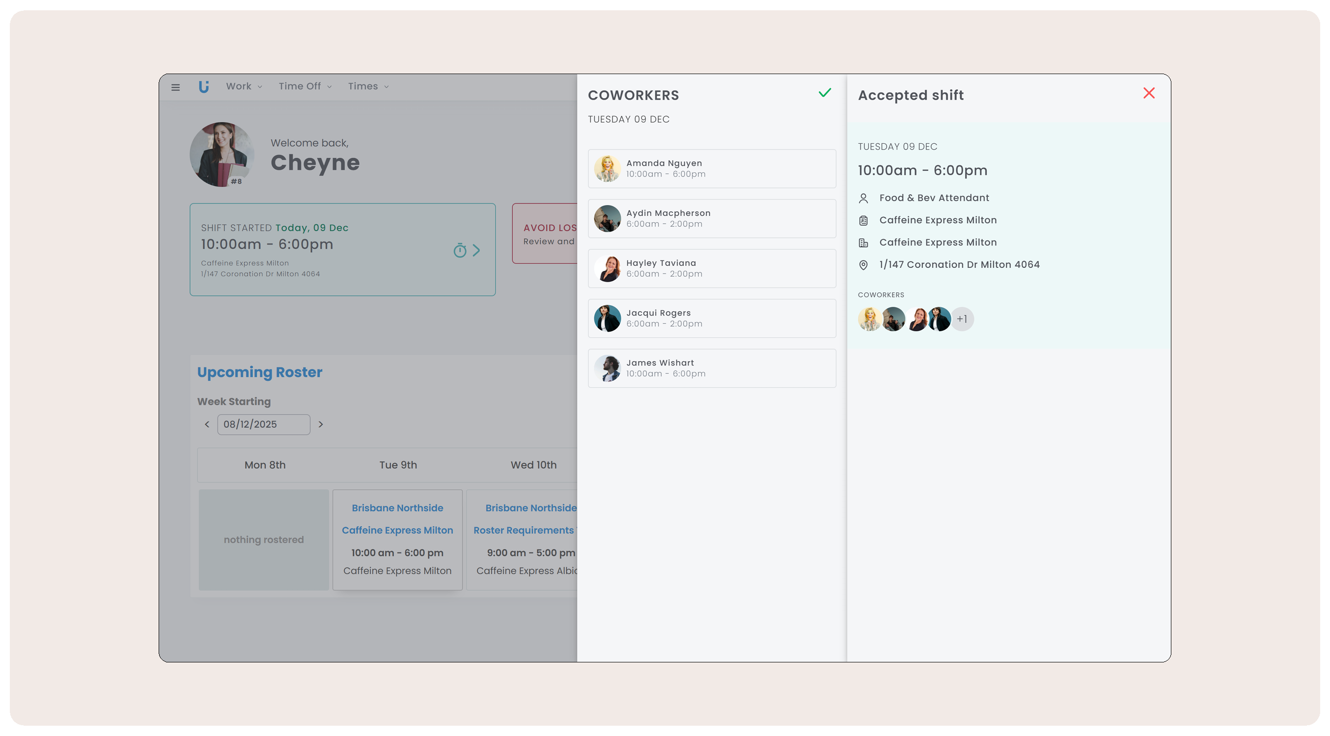 New Coworker View: Employees can see who they share or overlap shifts with to plan and coordinate more easily - think carpooling, shift swaps, and break coverage.
