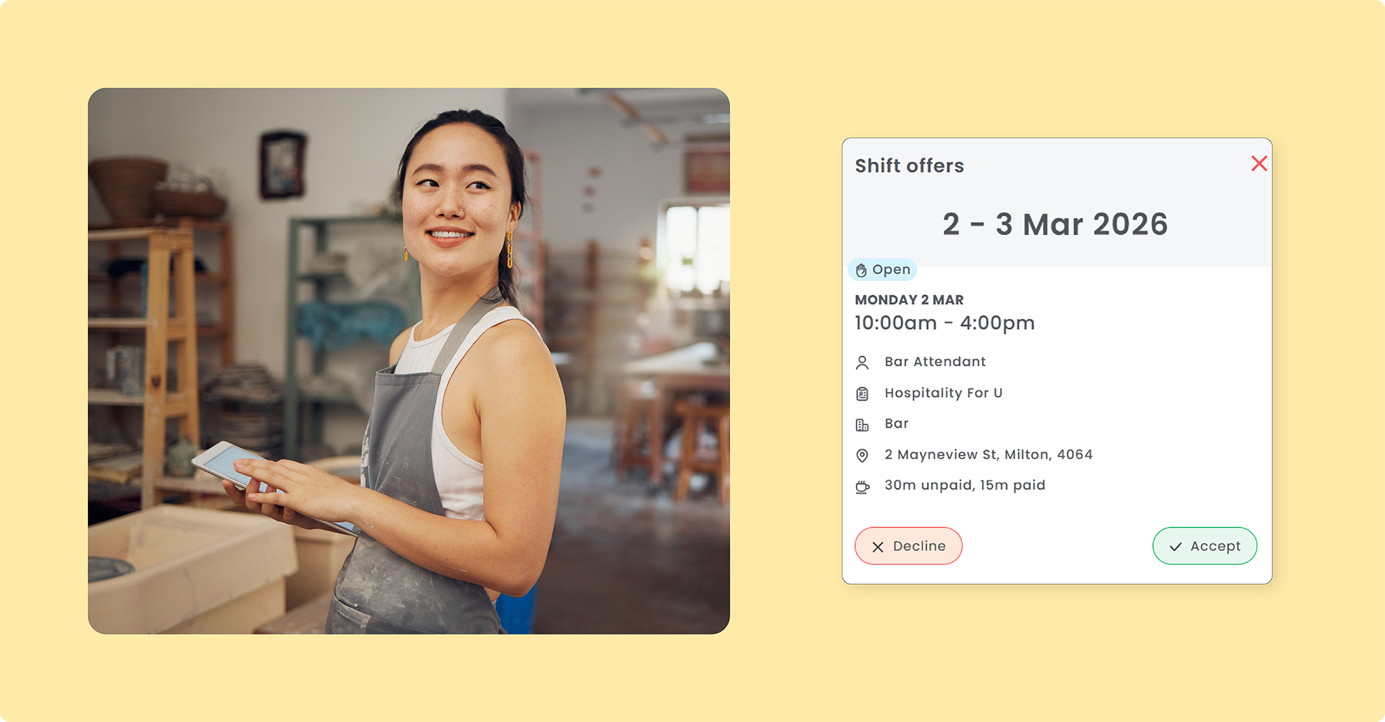 See the experience from your employees' perspective - from shift offer to confirmation, all within the Employee App:
