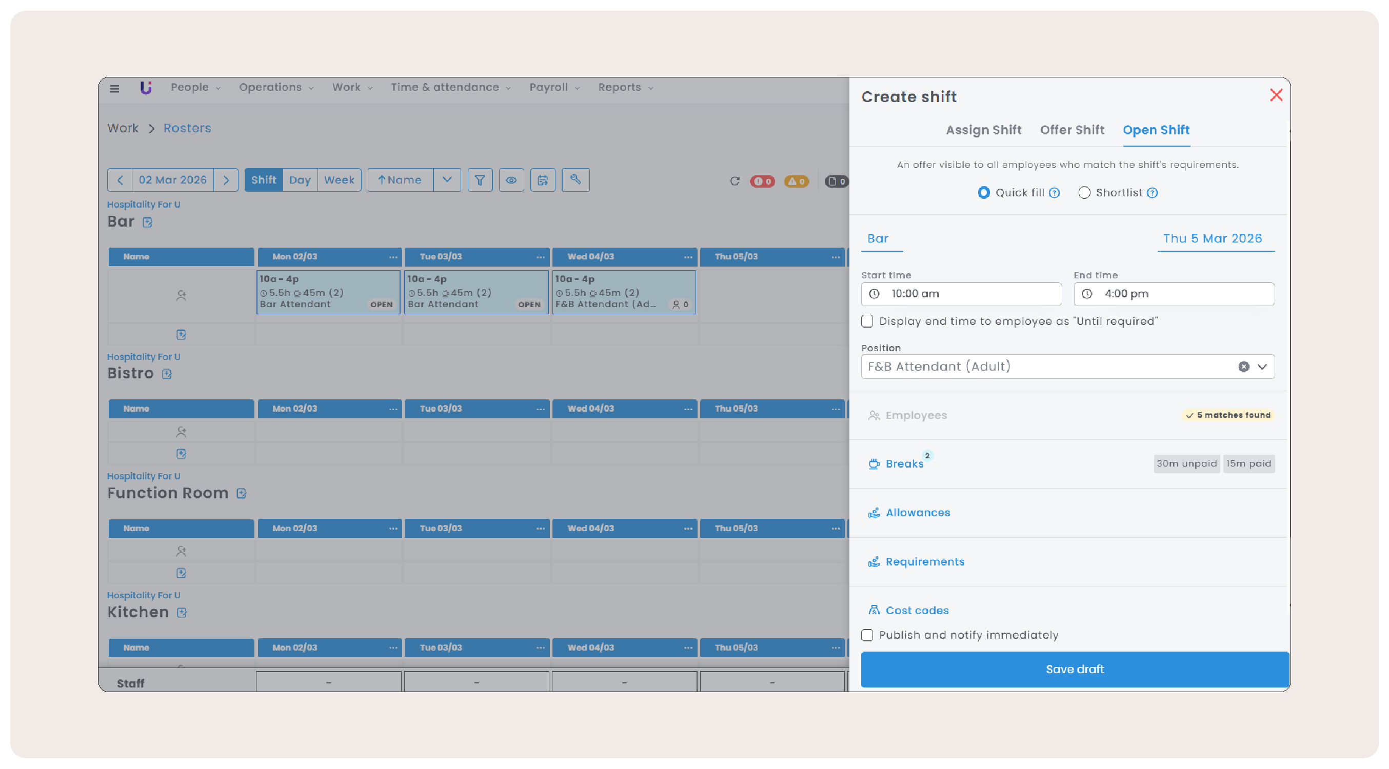 - Filling shifts - Quick Fill and Shortlists to reduce manual effort.