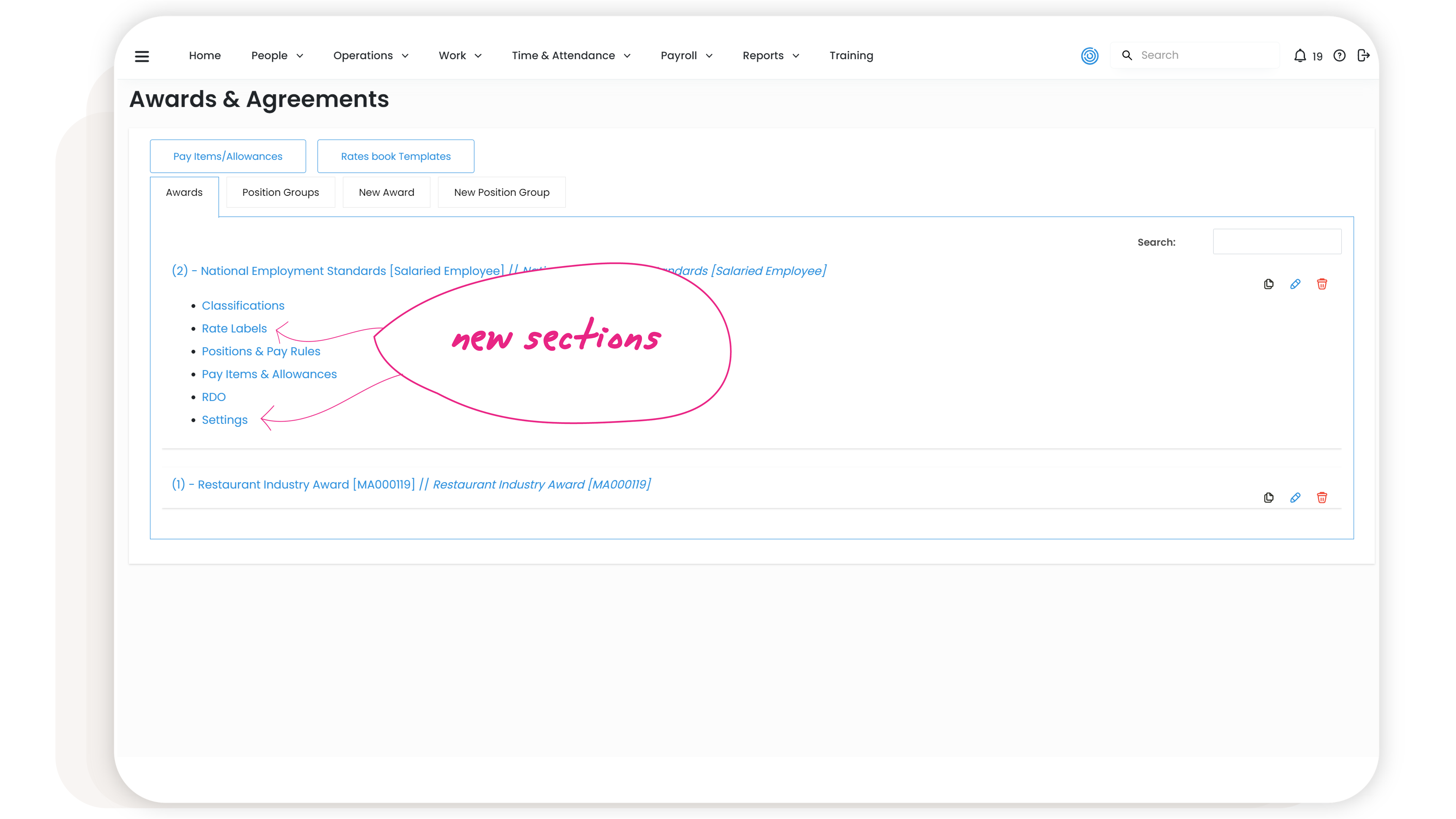 Rate labels & Settings have been separated into their own sections for easier management. You'll also notice some improvements to the layout when managing Awards for quick navigation and more intuitive workflow.