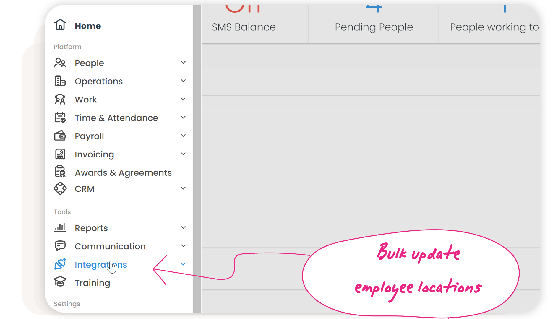 Simply head to your main menu > Integrations > CSV import. Here you can download your current employee list with locations, update the locations in the CSV file, and then import it back into the platform.