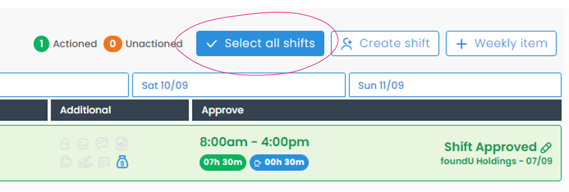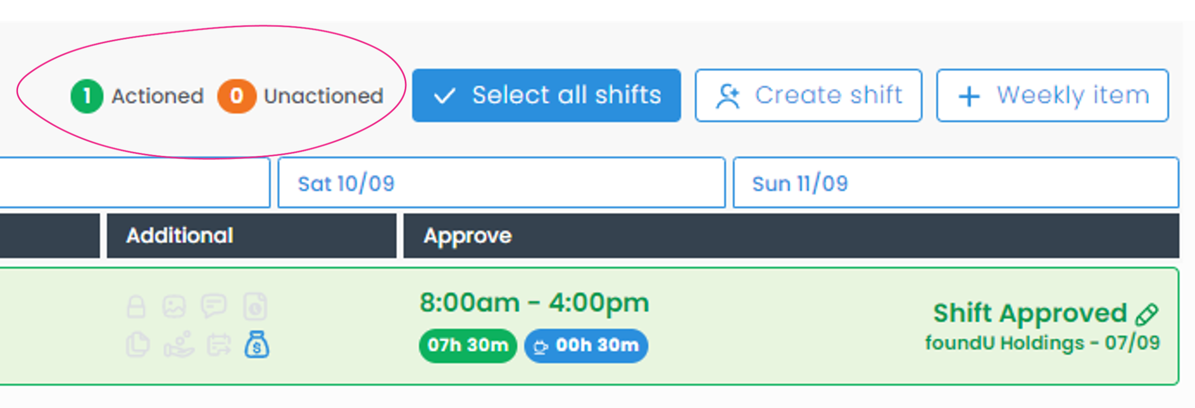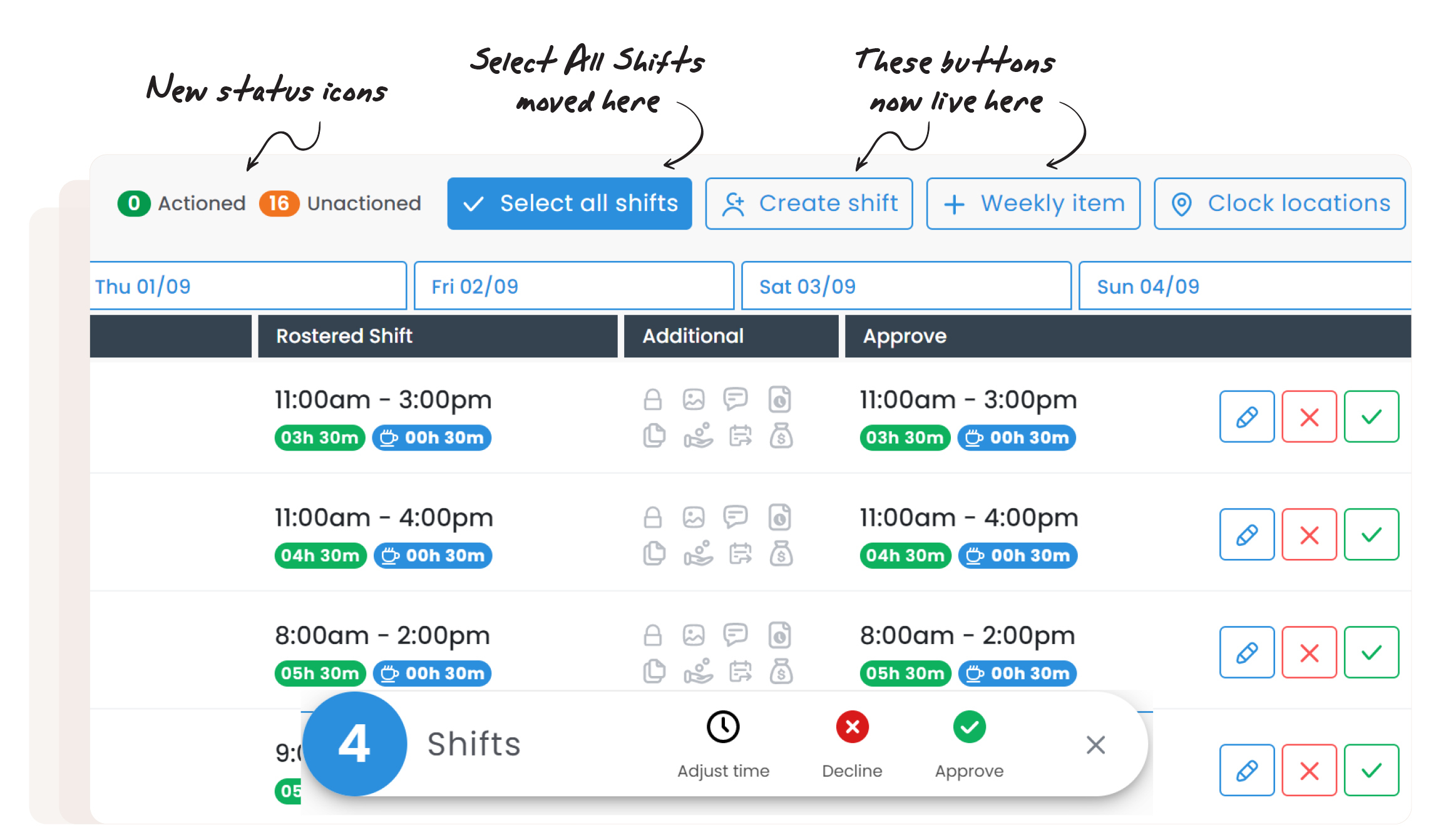 Easily track the number of shifts that have been or are yet to be actioned here with these new status icons.