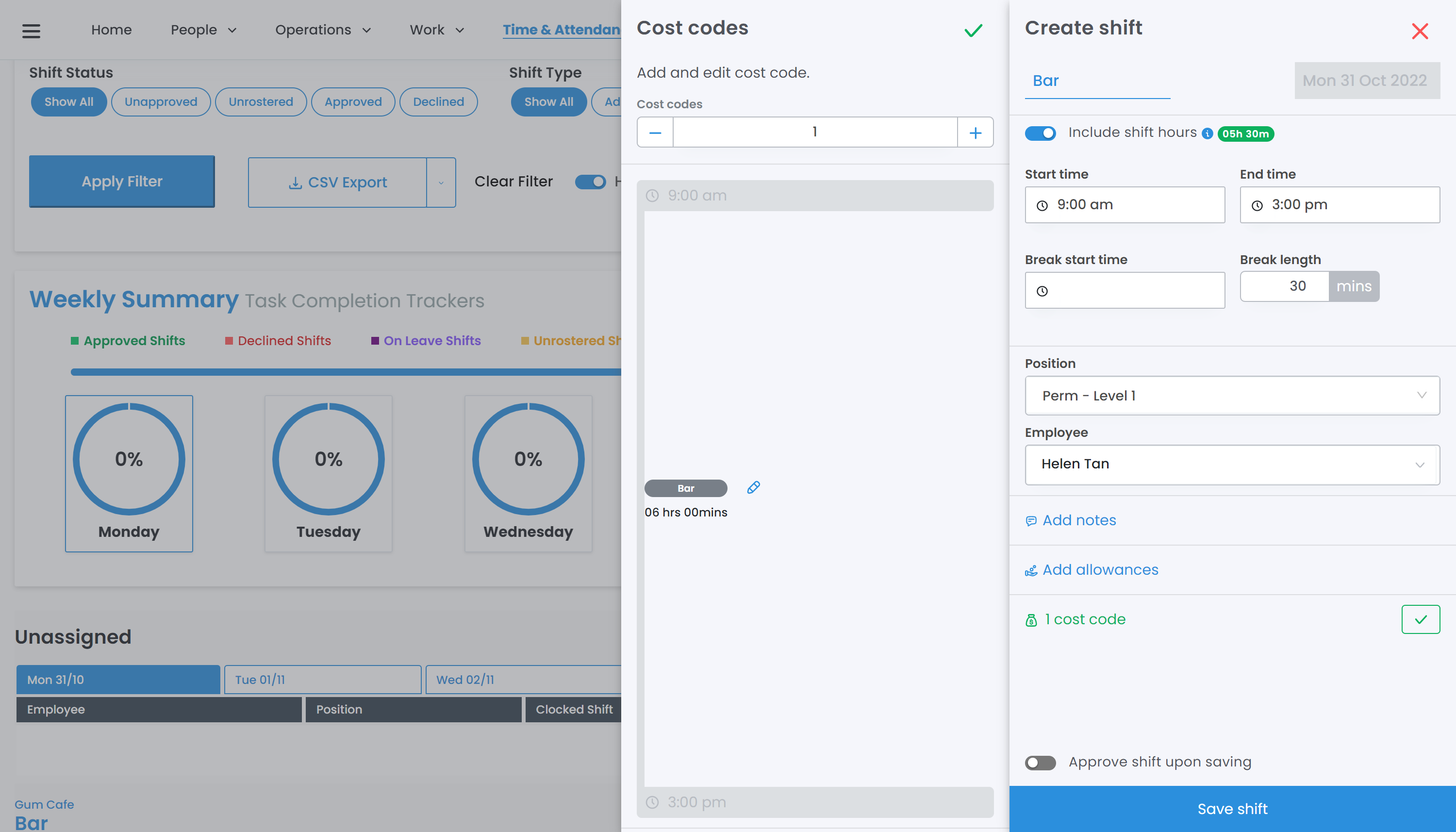 Creating Shifts in Approve Shifts has now been updated to the same look and experience as editing shifts.