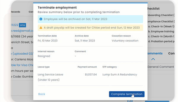 STP Phase 2 introduces a simpler, centralised workflow for terminating employees. Easily set a Cessation Reason which reduces the need for a separation certificate. Outstanding pay, shifts and leave balances can be actioned, and you can set an archive date! Check out the on-demand webinar on 'Offboarding Employees' to learn the full process.